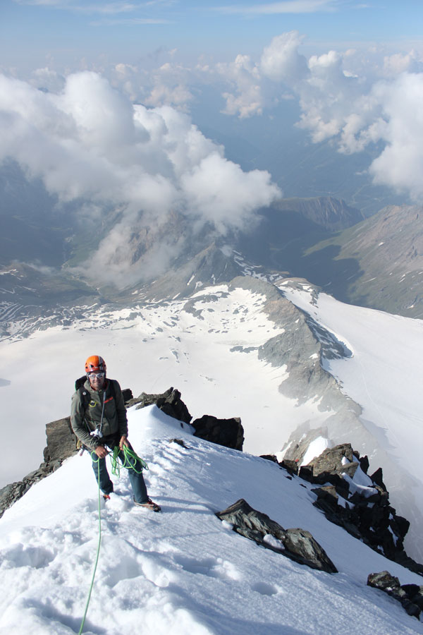 Geschafft: am Aufstieg vom Stüdlgrat mit Kletterstellen bis zum IV. Grad.